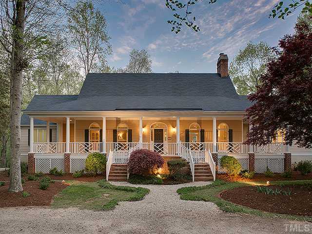 A winding tree lined drive takes you past a fenced paddock and horse barn to the low country style home quietly tucked in the woods. This secluded gem sits on over 21 acres, just 7.7 miles from downtown Hillsborough. A spectacular front porch welcomes you into a lovely open floor plan with large comfortable rooms and walls of glass overlooking the south fork of the Little River.