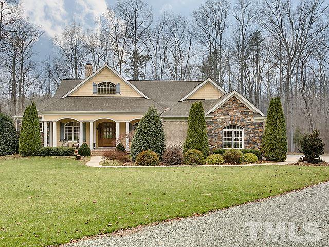 Private retreat on 10 acre creekside lot. One-level living with natural light. Gorgeous hardwoods, beautiful trim, Duke Stone fireplace. Owner's retreat has sitting area and luxurious bathroom. Cook's kitchen w/granite and SS appliances open to family room. Whole house audio system. Huge screened porch, deck w/ outside cooking area, fenced yard. Firepit by creek. Duke Stone, brick and fiber cement ext. Horses are allowed! Great neighborhood. Minutes to Hillsborough, Duke, downtown Durham and RTP.