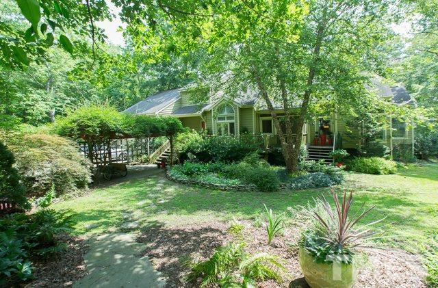 Retreat, relax, enjoy nature at its best in private setting convenient to UNC. Oozing charm, character, and abundant versatility. Studio spaces, in-law suite/apt, multigenerational spaces, exercise room, numerous casual areas, office space, 2 laundry areas, screen porch, multiple decks, primary kitchen & 2 smaller kitchens. Usage is limited only by your needs and your imagination. Yard is fenced, lovely gardens, landscape lighting. Energy efficient features. This is a beauty...a piece of paradise.