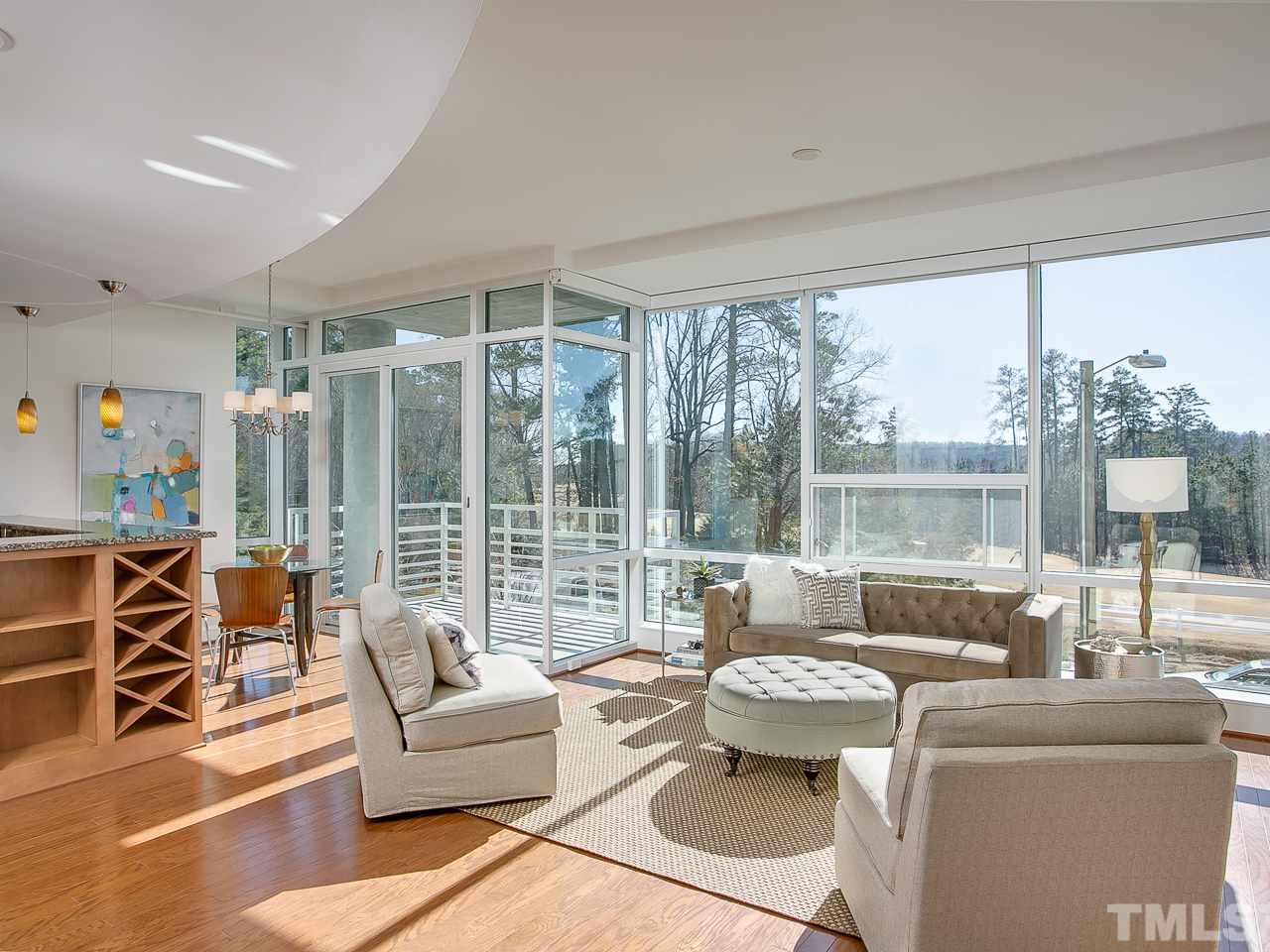 This lovely, bright, modern condo will make you smile! Floor to ceiling windows allow stunning light to fill the space from dawn until dusk. Enjoy coffee or cocktails from your porch overlooking the Finley Golf Course. Timeless, tasteful, neutral finishes include warm toned hardwoods throughout, granite kitchen and vanity tops, maple cabinetry, SS appliances, ceramic tile baths, fresh paint palette and updated lighting. This move-in ready home is an exceptional value in a premier location.