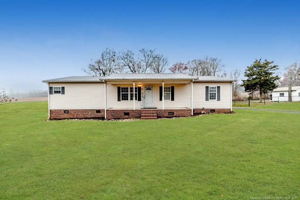 Enjoy the sights and sounds of spring from your large rocking chair front porch OR the back porch! This phenomenal home sits on over half an acre in a rural setting but convenient to main roads for easy commutes to Raleigh or Fayetteville. This home features a large kitchen, an open, split bedroom floor plan, separate laundry room, and large closets just to name a few. The two car metal garage out back is wired and insulated for those who love to have projects! This home has been very well maintained and move in ready.