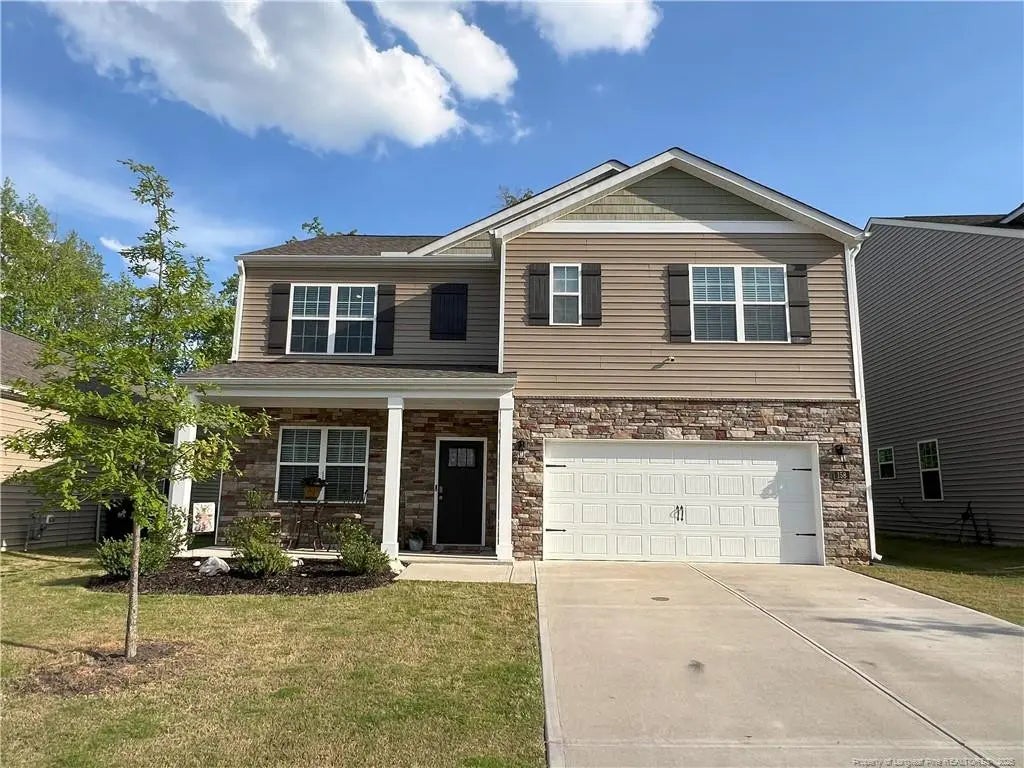 Lease to own Option is a possibility. Also there is an Assumable 5.25% interest rate on an FHA loan! Practically new home in North Sanford area conveniently located near US Hwy 1 for easy commute, only 30 minutes to Cary/Raleigh area, 45 minutes to Fort Bragg and just a few minutes to stores and restaurants of Sanford. This planned community offers sidewalks, dog park & common areas. Also in the plans are a community pool & business park bringing shops & restaurants to the area. Connected to City sewer & water, natural gas, high speed internet, trash & recycling pickup. The Premium lot has a large back yard which backs up to a wooded common area for privacy. This home offers 5 Bedrooms, 3 full baths plus a loft with closet. One bedroom downstairs with adjacent full bath is ideal for guest. Open floor plan with beautiful kitchen that has large island, granite countertops, subway tile backsplash, stainless appliances, Gas Range and corner pantry. LVP flooring, gas log fireplace, high ceilings & great closet space. The oversized primary suite has dual vanity and a large shower, walk in closet & a dressing room.