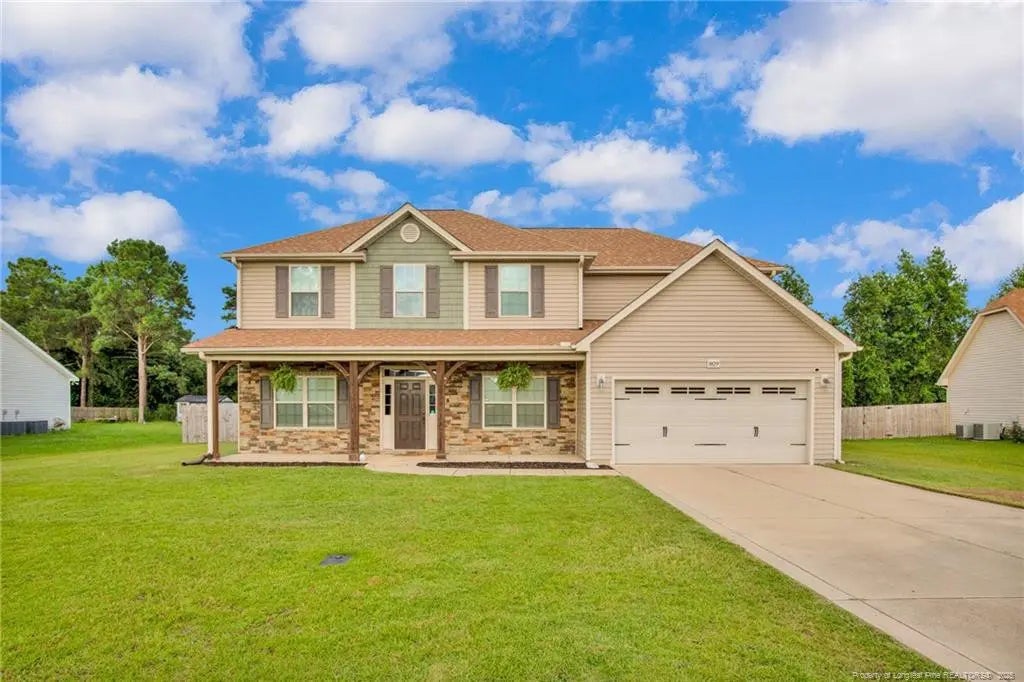 **$10,000 seller concessions—use as you choose!*** Welcome to 809 Pecan Grove Loop - a spacious and versatile home offering 4 bedrooms, 3 full bathrooms, a dedicated office, and a large upstairs bonus room that’s perfect as a playroom, media room, home gym, or second living area. There’s room for everyone to spread out and feel at home!Set on over half an acre, the property features a stone-accented front, a covered front porch and back patio, and a generously sized tree lined backyard ideal for entertaining, gardening, or giving pets room to roam.Inside, you’ll find a formal dining room with coffered ceilings and detailed trim, a separate formal living room, and a welcoming great room that flows into an oversized kitchen complete with granite island, ample counter space, and a walk-in pantry. The primary suite is a true retreat, with a spacious bedroom, a private en-suite bathroom with an expansive walk-in closet. Low maintenance LVP flooring throughout the main living areas adds style and makes cleaning easy.Located in the desirable Roslin Farms West neighborhood, this home offers comfort, flexibility, and space! With the planned opening of the nearby 295 extension in summer 2026, future commutes to Fort Bragg will be a breeze!