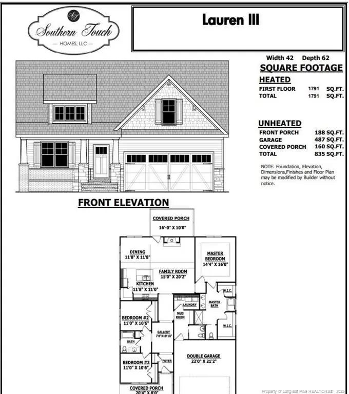 The Lauren III offers 1,791 sq. ft. of thoughtfully designed living space featuring 3 bedrooms, 2.5 baths, and a spacious 2-car garage. Step inside to an open-concept layout where the family room, kitchen, and dining area flow seamlessly together—perfect for everyday living and entertaining. The kitchen is a true centerpiece, complete with granite countertops, a large island that doubles as both a prep space and gathering spot, and soft-close drawers for added convenience and style. Whether you’re preparing family meals or hosting guests, this kitchen is designed to meet all your cooking needs with ease. Enjoy relaxing mornings or cozy evenings on both the covered front and back porches—ideal spaces for entertaining, unwinding, or taking in the outdoors. With its convenient location and modern design, the Lauren III combines comfort, functionality, and charm, making it the perfect place to call home.All images are for illustrative purposes only and individual homes, amenities, features, and views may differ. Delivery dates are approximate and subject to change without notice. Images may be subject to copyright