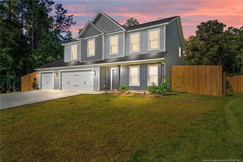 Beautiful modern farmhouse on a spacious .50-acre lot just minutes from the Carolina Horse Park. This thoughtfully designed home combines classic farmhouse charm with today’s most sought-after features, offering both style and functionality. A sweeping front porch and large covered back patio create the perfect spaces to relax, entertain, or simply enjoy the peaceful setting.Inside, the upgraded kitchen is a chef’s dream with a generous island with built in microwave, quartz countertops, farmhouse sink, stylish tile backsplash, vent hood, and soft-close cabinetry. An elevated appliance package, open shelving, and designer lighting add striking detail, while carefully curated color palettes give the home an on-trend yet timeless appeal.The oversized owners’ suite is a private retreat, complete with a sitting area, spa-inspired ensuite bath with dual quartz vanities, a separate shower, and a garden soaking tub surrounded by modern subway tile. The expansive walk-in closet offers abundant storage. Three additional bedrooms provide plenty of space for family or guests and share a beautifully finished full hall bath.Upstairs, a large flex room offers endless possibilities of movie nights, a playroom, or a home gym. While on the main-level there's a flex space is perfect for a home office or formal dining. A coveted three-car garage provides room for vehicles, hobbies, or extra storage.Bring your horses or simply enjoy the privacy of the generous lot. No city taxes and no HOA mean more freedom to make this property your own.