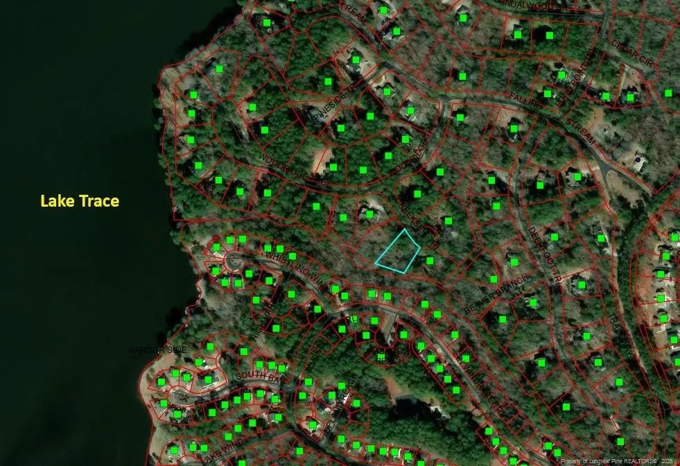 Incredible nearly half-acre lot located in Carolina Trace's South Landing POA. It's difficult to find good lots that are this large in Carolina Trace. The South Landing POA offers a swimming pool, park, and marina. The lot itself has sewer, water, electric, and high-speed internet available. Carolina Trace is a 24-hour guarded, gated, golf and lake community located in easy commuting distance to Raleigh, Fort Bragg, Pinehurst, and Southern Pines. Located just minutes from shopping, and a phenomenal health care facility; this lot is a can't miss if you're looking to build your own home now or in the future. Carolina Trace features a 315+ acre lake great for fishing, kayaking, paddleboarding, and boating. The two golf courses, lake and creekside, were designed by well-known Robert Trent Jones. There are three (1x main gate; 2x back gates) entry and exit gates to the community that are accessible via RFID window sticker after becoming a resident or property owner. The optional country club membership can include a 24-hour gym, a yoga studio, multiple event rooms, formal dining, a pub, chipping green, putting green, driving green, tennis courts, pro shop, onsite golf pros, olympic sized pool, and a pool side bar. You will be in aww upon entering this community!